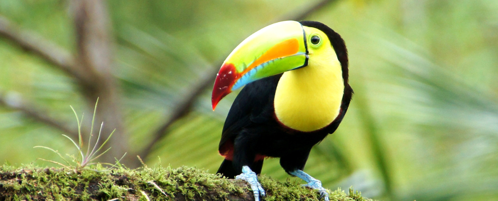 This afternoon we will visit Cahuita National Park, which was created to preserve the coral reef along its shores. Sea turtles nest in the protected marine area and the reef is home to many different species of coral and fish. On land, brightly coloured birds including green ibises, keel-billed toucans and herons live in the forest, and you might spot mammals such as monkeys and pacas roaming amongst the tropical plants.